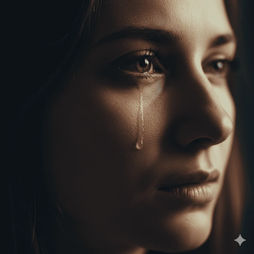 Prompt: Ultra-realistic 4K portrait of as the reference image, with the same face, same identity, and no facial changes, captured in a close-up shot with tears glistening in the eyes, conveying deep emotional intensity. The subject is an adult person, wearing simple, neutral-toned clothing. Soft rim lighting highlights the contours of the face against a dark, moody background, while shallow focus with a 50mm lens look draws attention to the expressive eyes. Dramatic shadows, realistic skin texture with fine pores, subtle film grain, and cinematic color grading enhance the emotional depth. The scene is framed with a professional cinematic portrait style, ultra-realistic detail, and a movie-quality emotional impact.