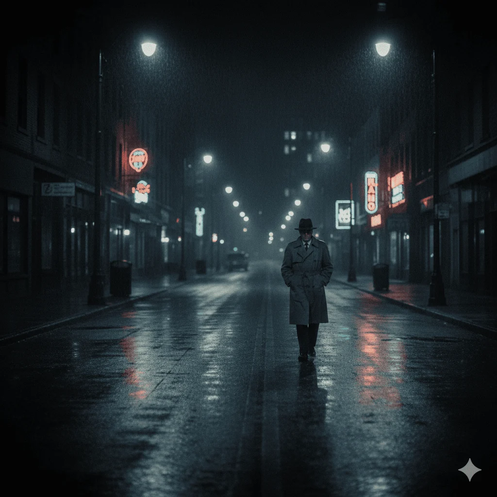 Prompt: Ultra-realistic 4K portrait of as the reference image, with the same face, same identity, and no facial changes, captured while walking alone under glowing streetlights at night as light rain falls, creating reflections on the wet road and a deeply moody atmosphere. The subject is an adult character, wearing dark, cinematic clothing suitable for a noir-style scene. Cinematic night lighting with neon highlights and controlled contrast casts realistic shadows and enhances facial depth, while surrounding lights softly reflect off rain-soaked surfaces. The environment is an urban nighttime street scene with neon lights in the background, dark tones, and a dramatic film noir style. Realistic skin texture with fine detail, ultra-detailed composition, movie scene framing, and a professional photography style that feels like a high-quality cinematic still.